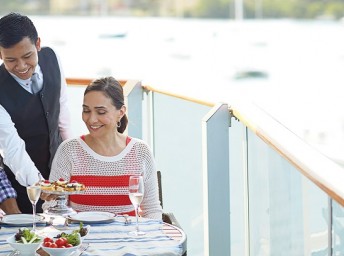 Stravovanie: V cene plavby je plná penzia. Raňajky, obedy a večere si môžete vychutnať v hlavnej reštaurácii, kde máte na výber od klasickej a vegetariánskej kuchyne až po špeciality v navštívenom regióne, prípadne špeciálne diétne požiadavky (ktoré však musia byť ohlásené vopred). Večera sa podáva o 17:45 alebo o 20:00 na dvoch podlažiach v hlavnej reštaurácii. Jedno podlažie je prispôsobené pre voľný vstup medzi 17:15 – 21:00. Pizzu, talianske šaláty alebo hamburger si môžete objednať aj v občerstveniach pri bazéne. K dispozícii je aj Lido (bufetová reštaurácia), kde si môžete vychutnať raňajky a obedy v ležérnom štýle s výhľadom na oceán.