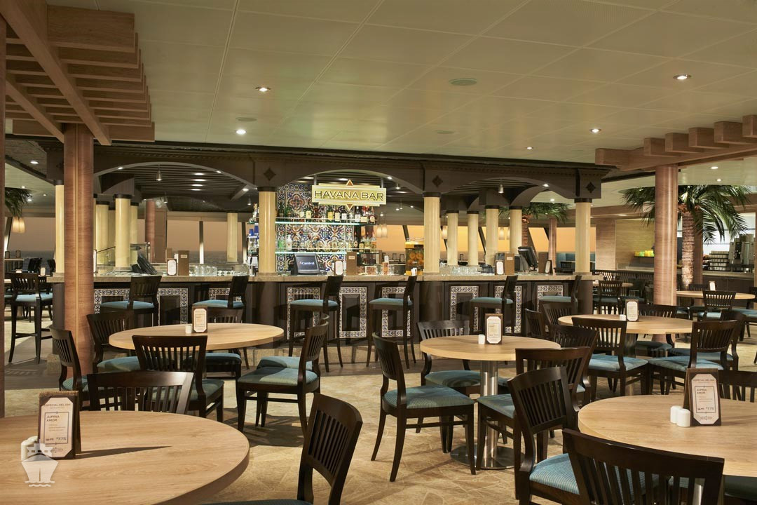 - Čapovaná voda, limonáda, ľadový čaj, káva, čaj, kakao z automatov v hlavnej reštaurácii Main Dining Room a bufetovej 24/7 reštaurácii Lido
