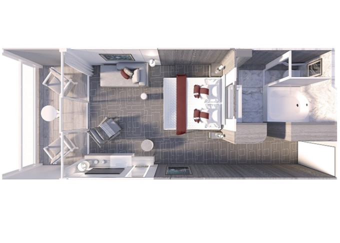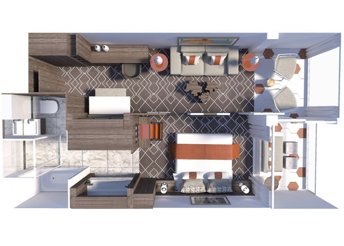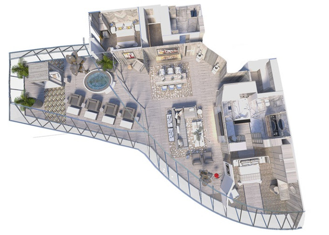 2 nové typy apartmánov: najväčšie a najluxusnejšie sú 2 Iconic Suites v čele lode; každá s rozlohou vyše 460 m². Každá má 2 spálne a 2 balkóny s rozlohou 700m², balkóny majú vlastnú vírivku a altánky.