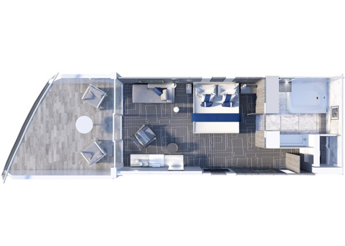 | E3 - Kajuta Edge s balkónom Infinite / obmedzený výhľad 18,5 m² + balkón Infinite 4 m² s obmedzeným výhľadom. 6,7. paluba. Max 2-4 osoby. | 7 574 € 7 574 € za osobu | ||