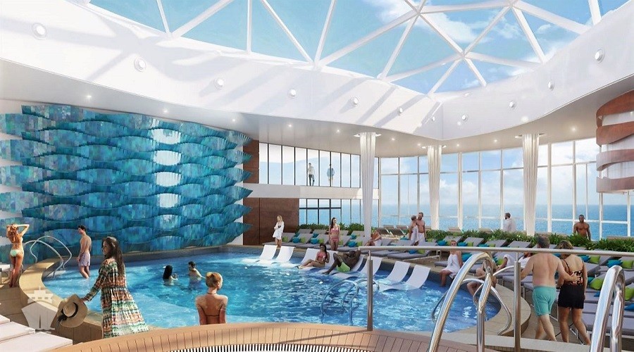 Revolučný je aj asymetrický dizajn vonkajšej 14. paluby Resort Deck s novou strešnou záhradou Eden, viac-úrovňovou bežeckou dráhou a netradične riešeným soláriom vyhradeným pre dospelých. Resort Deck bol navrhnutý architektom Tomom Wrightom a je lemovaný sklenenými tablami cez dve poschodia s množstvom lehátok s výhľadom na more. Na boku veľkého bazéna sú vírívky v tvare dvoch obrovských martini pohárov. Nachádza sa tu aj 6 privátnych plážových kabín.