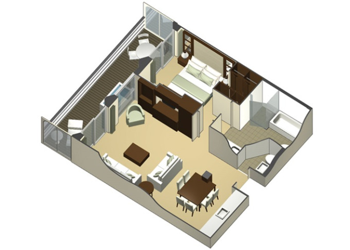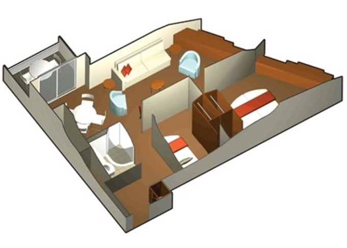 | S1 - Sky Suite 28 m² + balkón 7 m². 6. až 12. paluba. Max 4 osoby. Výhody Suite The Retreat. | 4 062 € 4 062 € za osobu |