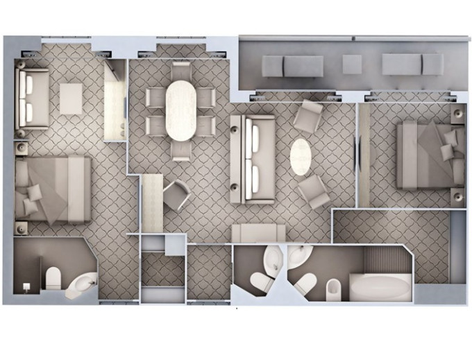 ![]() | Royal Suite s 1 spálňou 69 m² / z toho 12 m² veranda s 2 spálňami 96 m² / z toho 16,5 m² veranda Audio systém Bang&Olufsen, kávovar Illy Espresso ![]() |