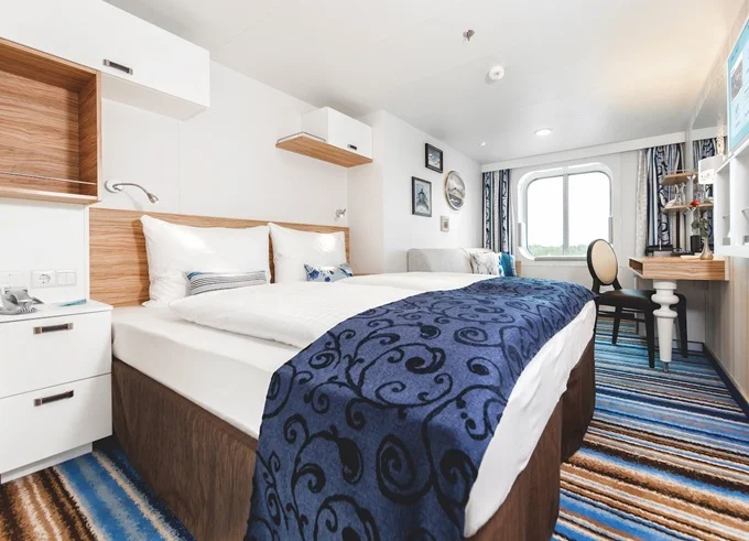 | AUAO - Kajuta s oknom kat. A 17 m². Neotvárateľné okno. 3,8. paluba. Max 4 osoby. | 2 068 € 1 034 € za osobu | ||